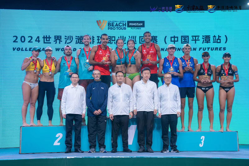 2024年世界沙滩排球职业巡回赛(中国平潭站)5月12日在福建平潭国际旅游岛沙滩运动基地落幕,天津选手白冰与浙江选手王凡组成的中国队成功夺得女子组冠军。