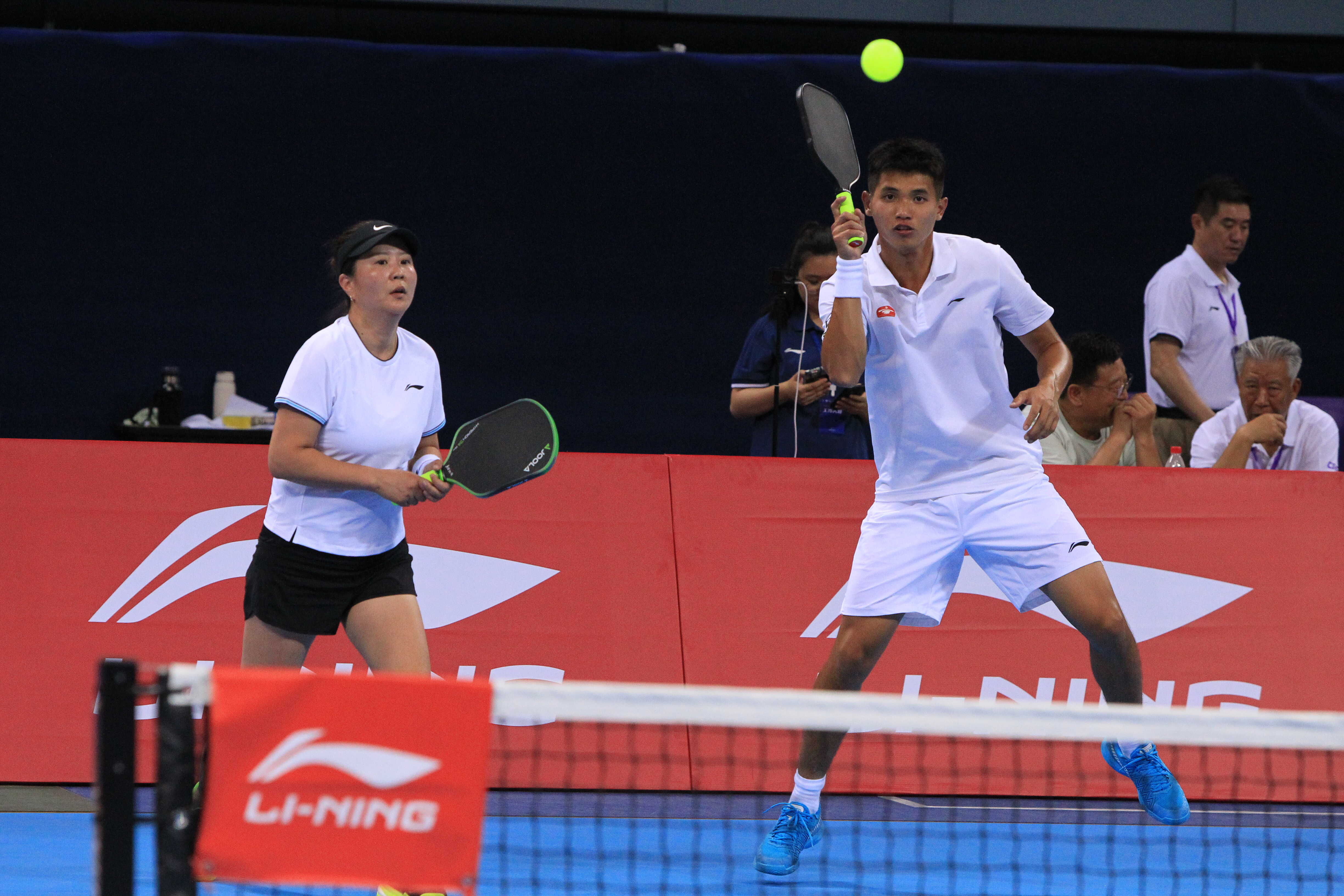 赛场上,选手们挥汗如雨,从小组循环赛到淘汰赛,展现出了顽强拼搏精神和良好竞技状态。参赛选手年龄跨度从19岁到65岁,充分体现了匹克球“老少皆宜”的特点。商业大学体育馆内匹克球拍击球的清脆声响,与数百名选手的欢呼交织成津城最动听的全民健身乐章。