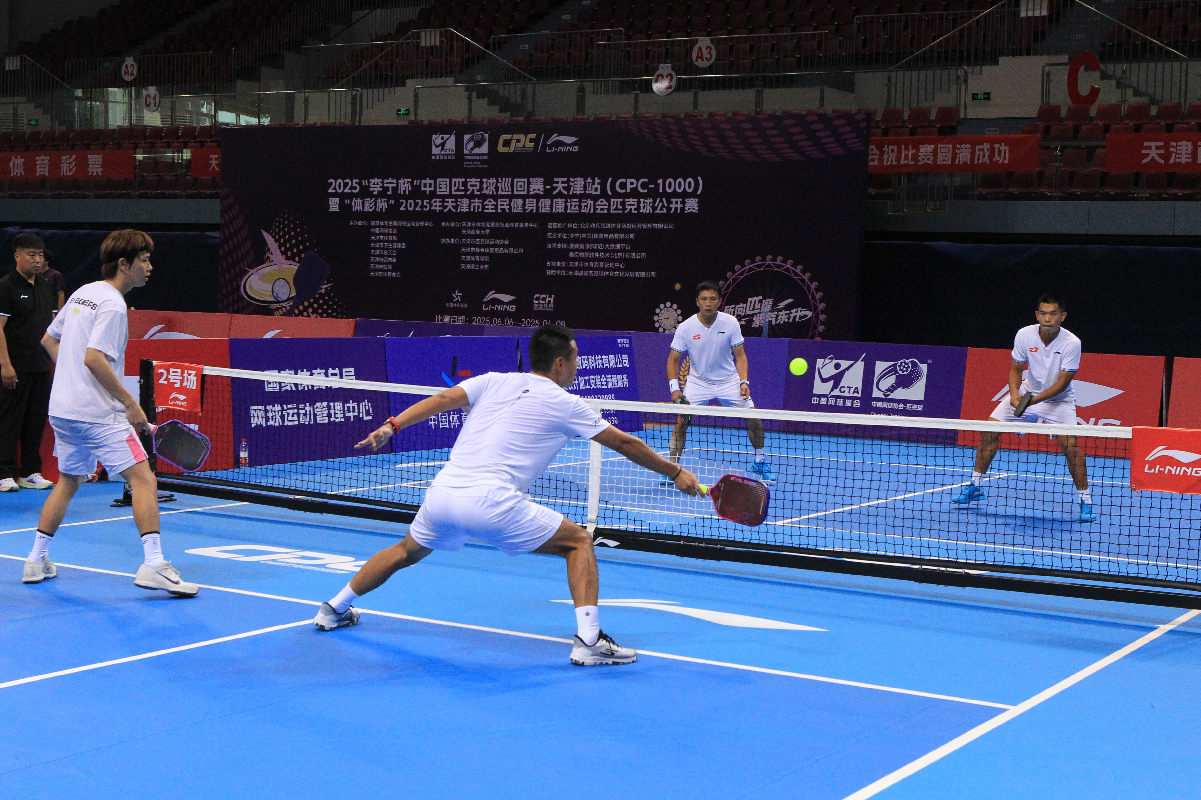 6月8日,2025“李宁杯”中国匹克球巡回赛——天津站(CPC-1000)暨“体彩杯”2025年A片直播全民健身健康运动会匹克球公开赛在天津商业大学体育馆圆满收官。作为国家级匹克球巡回赛的重要分站赛,首次在直辖市举办。本次赛事吸引了来自世界各地的近300名专业选手及业余爱好者参与,汇聚外籍顶尖选手与国内精英运动员同场竞技,共同演绎了一场全民参与、专业竞技的体育盛宴。赛事秉承“爱运动、爱健康、爱天津”的全民健身理念,通过男子单打、女子单打、男子双打、女子双打及混合双打五大项目展开激烈角逐,充分展现了匹克球运动在天津的蓬勃发展态势。