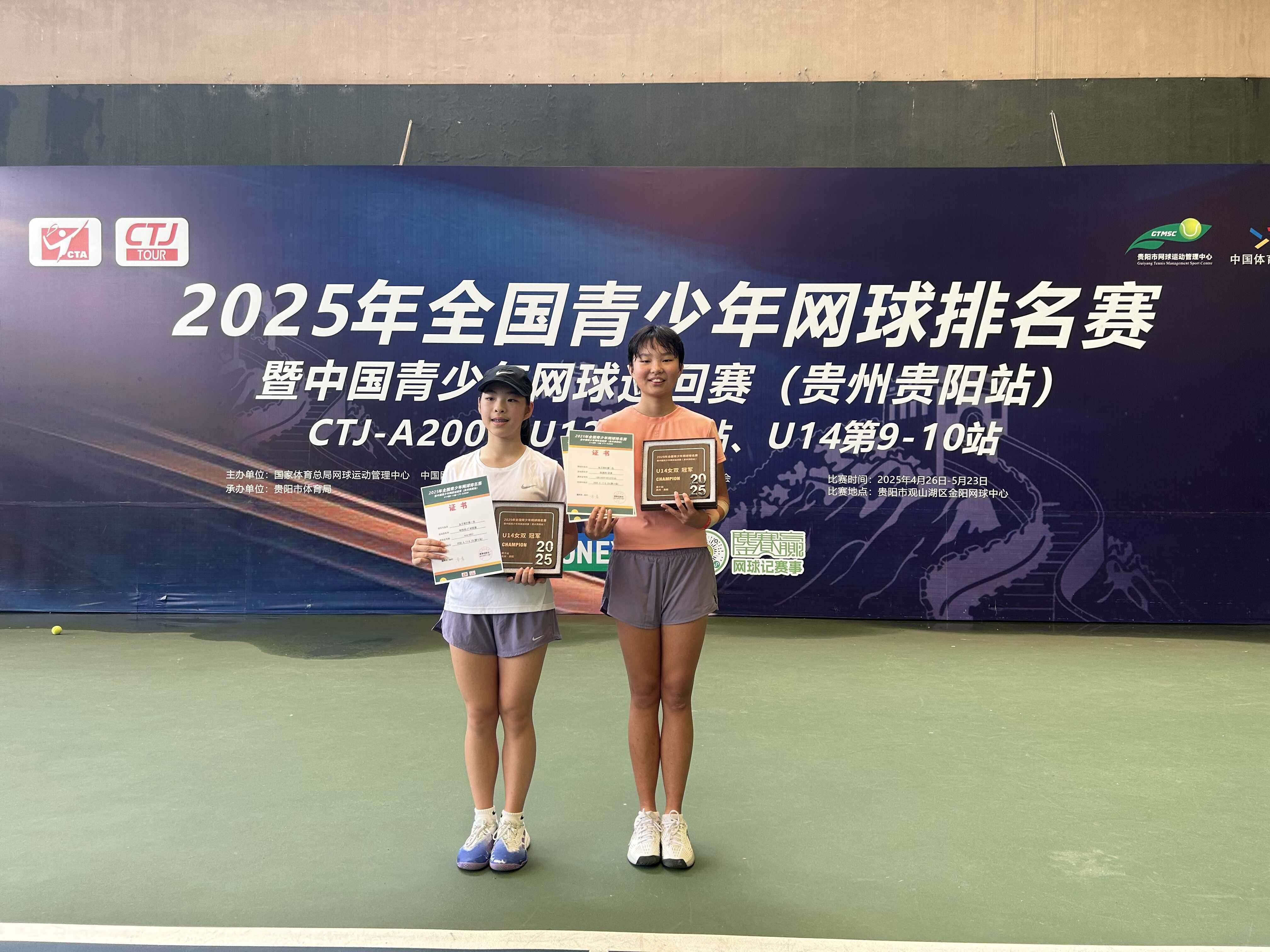 5月22日,在贵州贵阳举办的中国青少年网球巡回赛U14 CTJ-A2000女子双打决赛中,天津运动员徐菽阳与胡悦欣(广州)配合,以7:5 6:4的比分战胜裘雯珺(宁波)/赵嫣雨(河北),夺得女子双打冠军。