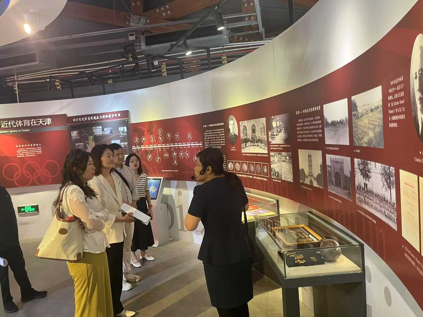 四川省体育博物馆副馆长任庆范一行参观了“天津与奥运”专题展、海河回响——女排精神展和“体育非遗看天津”展览。在讲解员的带领下,博物馆同仁深入了解了“近代体育看天津”的历史和天津对中国奥林匹克事业发展做出的突出贡献,学习“祖国至上 团结协作 顽强拼搏 永不言败”的新时代女排精神,感受天津体育非遗的魅力。