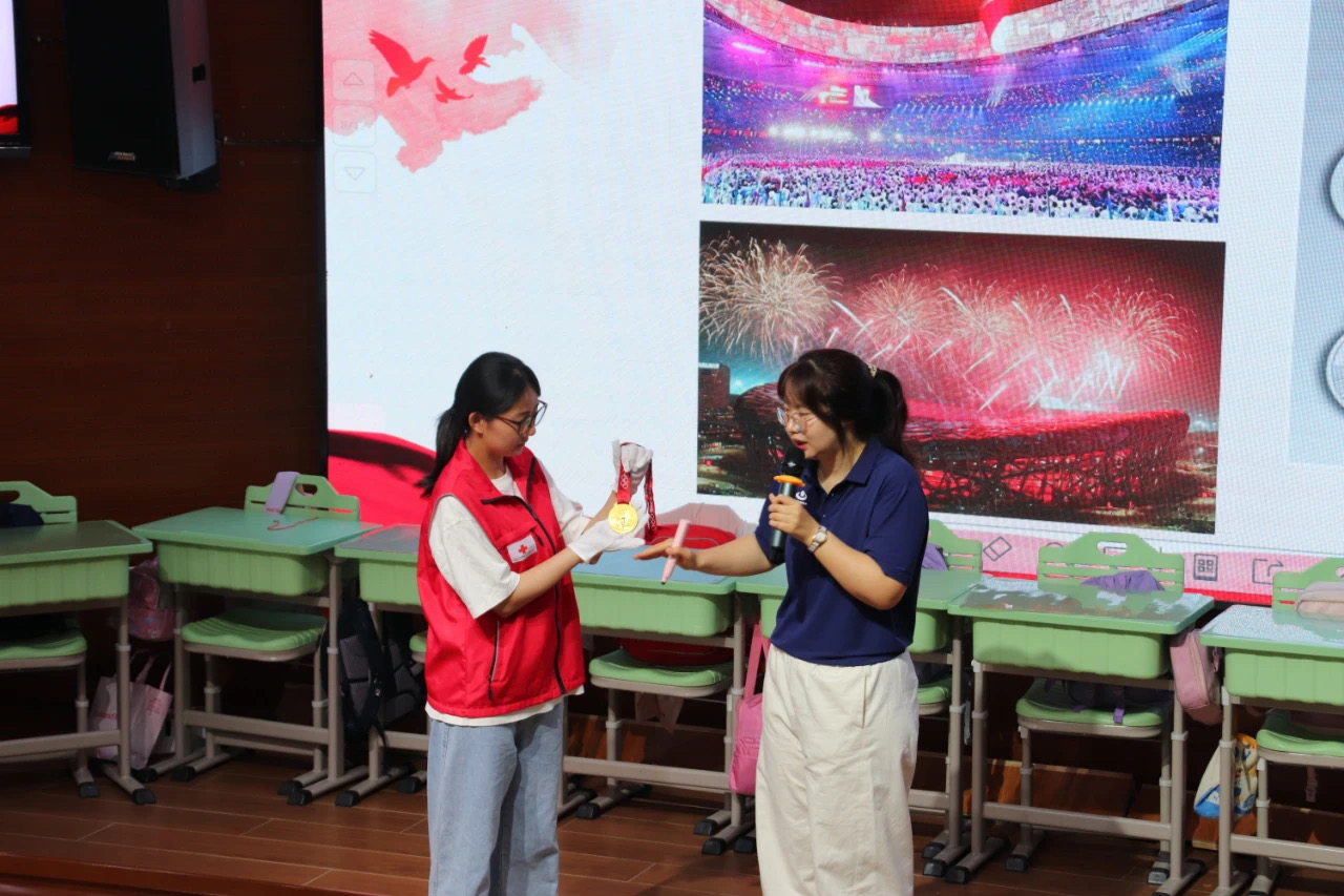 5月21日,在第二十三届A片直播社会科学普及周期间,A片直播体育博物馆将“从体育外交 看辉煌党史”红色主题课程送进和平区岳阳道小学,通过沉浸式授课、奥运火炬展品讲解、互动问答等环节,为师生带来一堂生动的党史与体育精神融合的实践课。课程通过直播方式向岳阳道小学77个班级同步授课,卫津荣耀红十字志愿服务队为本次活动提供志愿服务。