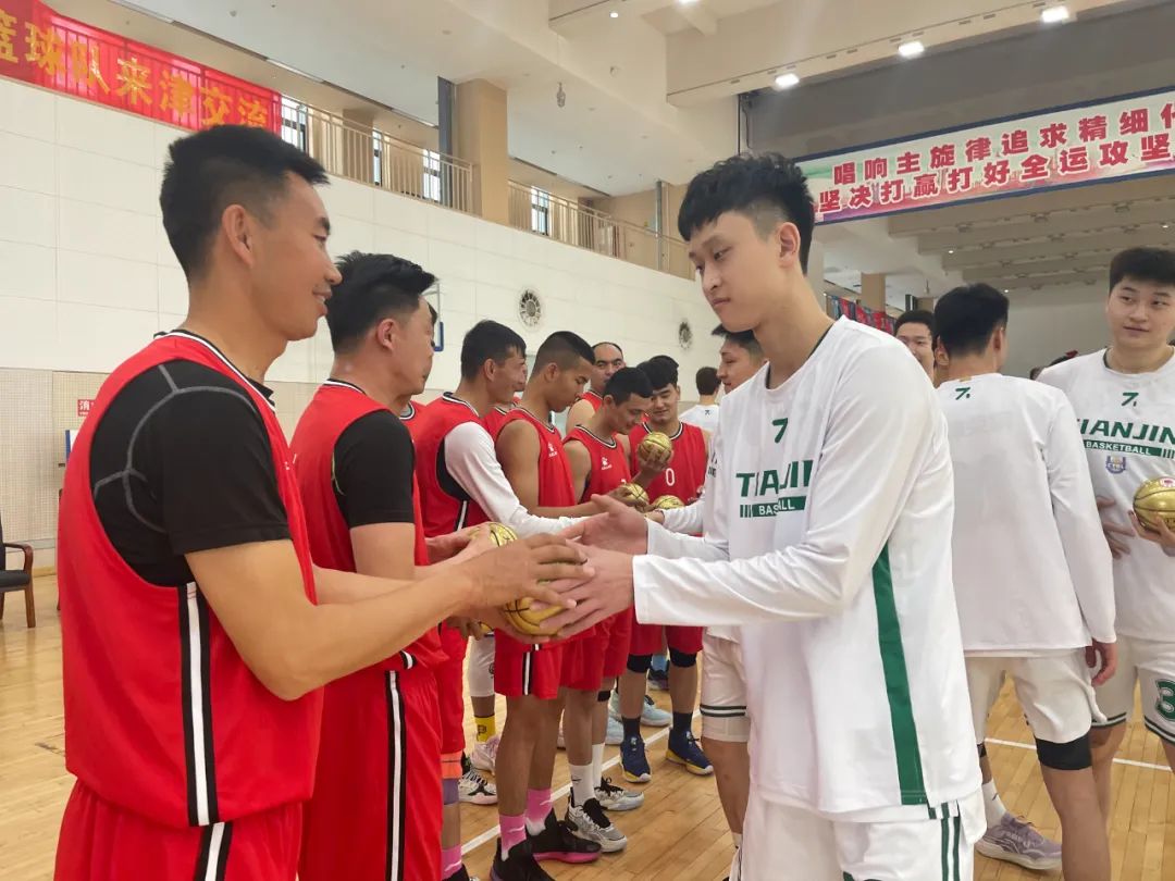 3月26日,由a片直播app 有关领导带领A片直播篮球运动管理中心完成了新疆和田地区篮球队来津交流活动。活动期间,主要以体育促交流、以篮球促友谊,向和田代表队赠送纪念篮球,并进行友谊赛活动。比赛紧张激烈,双方球员发挥出了高水平的篮球技艺和战术意识,完美展示出了双方良好的体育精神。赛后,天津篮球队教练,为赛事做出了点评,并为和田代表队在篮球技战术等方面从专业的角度做出了指导,期待双方未来篮球竞技水平能够得到更高的提升。