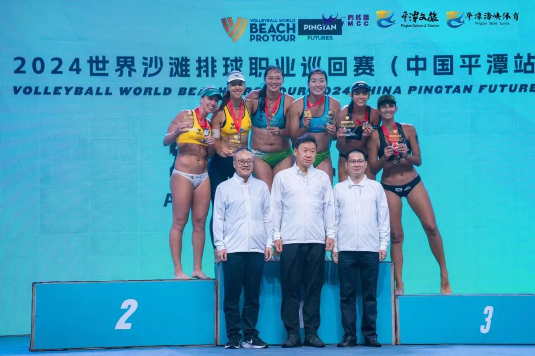 2024年世界沙滩排球职业巡回赛(中国平潭站)5月12日在福建平潭国际旅游岛沙滩运动基地落幕,天津选手白冰与浙江选手王凡组成的中国队成功夺得女子组冠军。