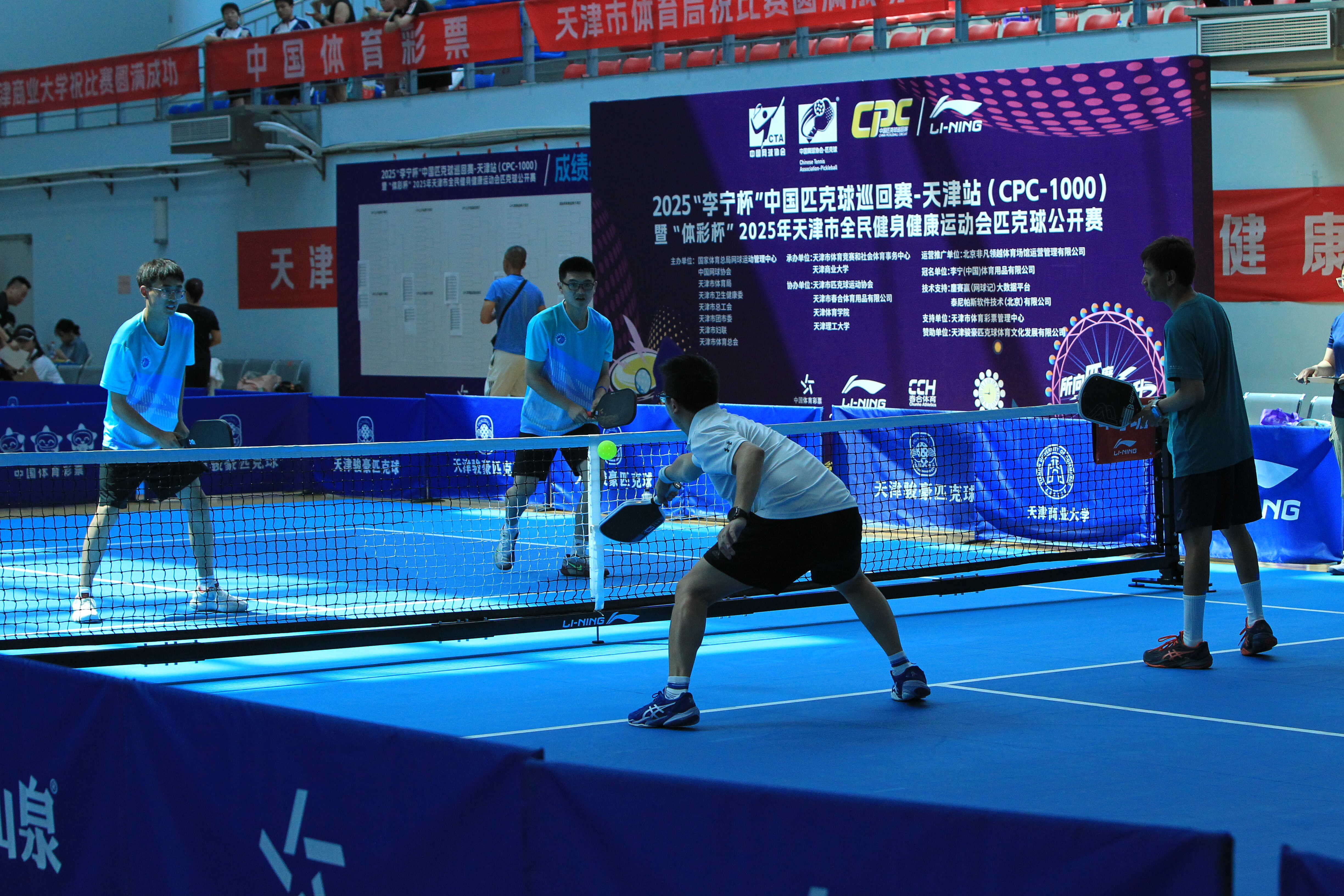 6月8日,2025“李宁杯”中国匹克球巡回赛——天津站(CPC-1000)暨“体彩杯”2025年A片直播全民健身健康运动会匹克球公开赛在天津商业大学体育馆圆满收官。作为国家级匹克球巡回赛的重要分站赛,首次在直辖市举办。本次赛事吸引了来自世界各地的近300名专业选手及业余爱好者参与,汇聚外籍顶尖选手与国内精英运动员同场竞技,共同演绎了一场全民参与、专业竞技的体育盛宴。赛事秉承“爱运动、爱健康、爱天津”的全民健身理念,通过男子单打、女子单打、男子双打、女子双打及混合双打五大项目展开激烈角逐,充分展现了匹克球运动在天津的蓬勃发展态势。