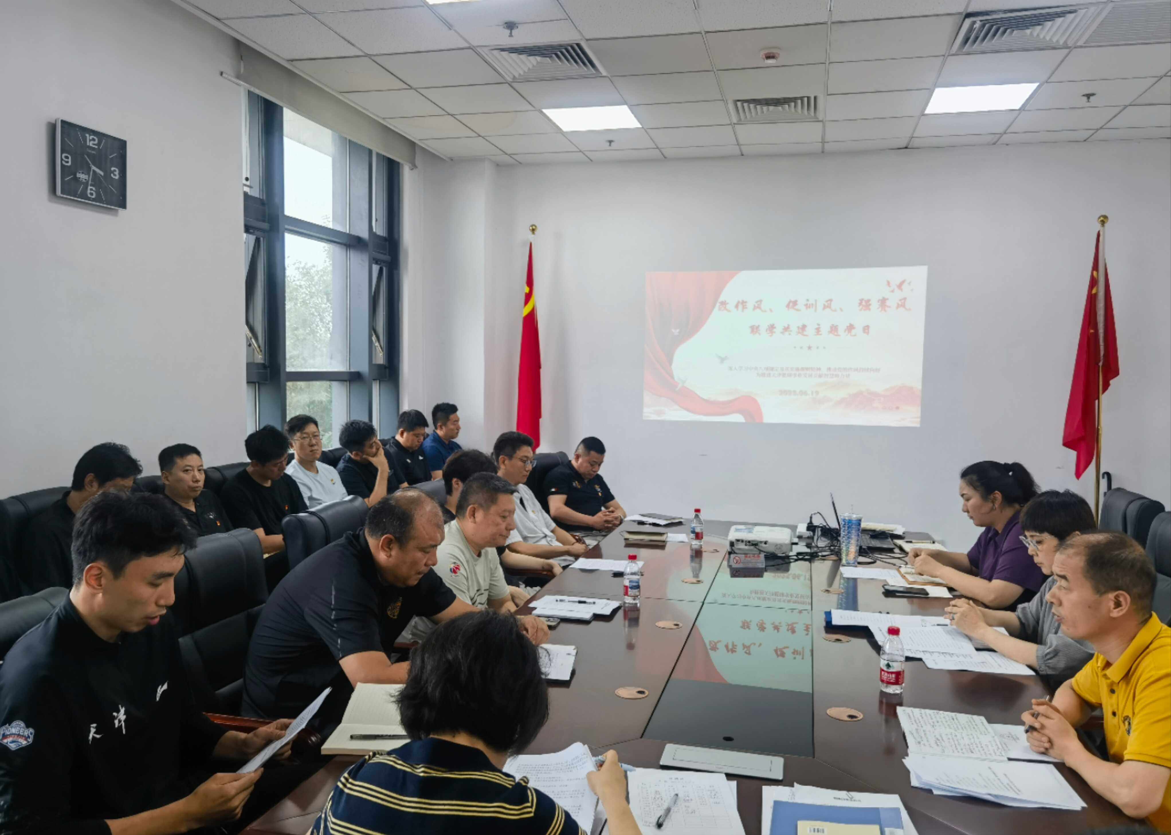 6月19日,篮球中心党总支联合与局巡察办联合开展“改作风、促训风、强赛风”联学共建主题党日活动。此次活动聚焦作风建设与事业发展深度融合,通过理论学习与业务研讨相结合,旨在以优良作风为抓手,推动训练水平提升、赛事品质升级,切实将学习成果转化为推动天津篮球事业发展强劲动能。