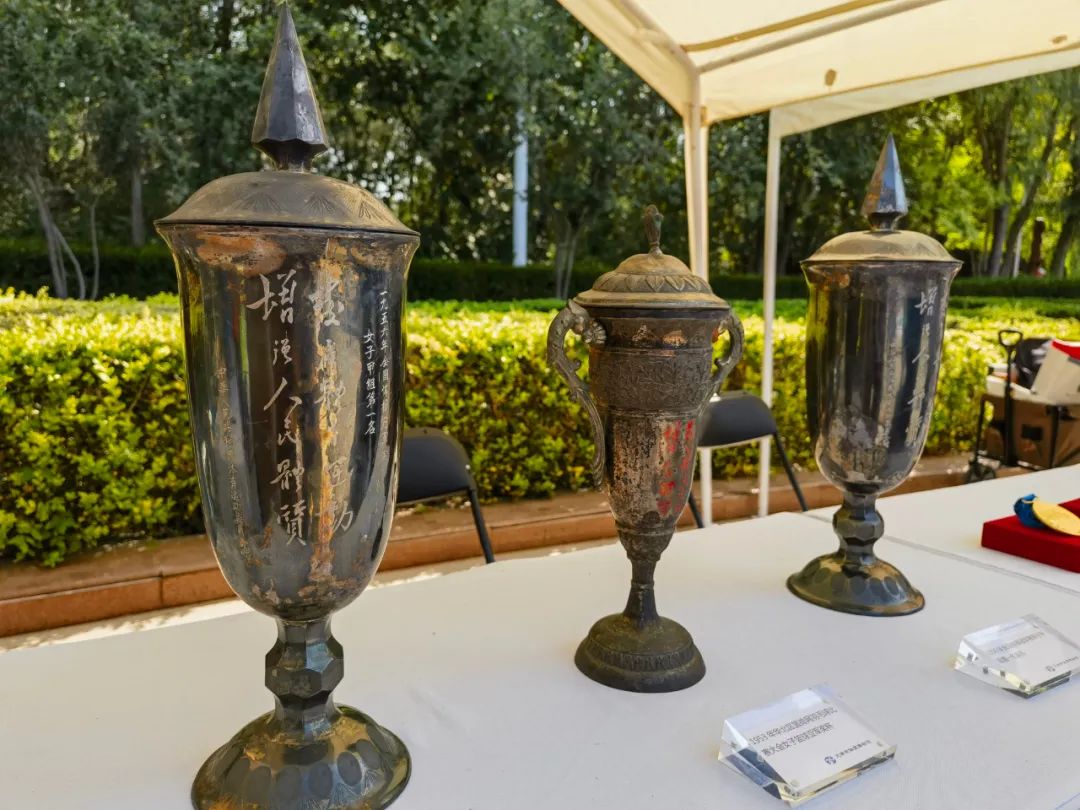 早上八点的西沽公园,前来锻炼的市民络绎不绝,主广场内更是人头攒动,“发展体育运动,增强人民体质”题词73周年全民健身主题活动即将在这里启动。活动现场,体育文化展区成为市民关注的焦点,8座上世纪50年代全国体育赛事的奖杯格外引人注目。斑驳泛黄的奖杯上,“发展体育运动 增强人民体质”十二个苍劲有力的大字依然清晰可辨,诉说着73年前,毛泽东同志为对新中国体育事业的规划和期望,更见证了那一代天津体育人追求卓越、拼搏进取的精神信仰。见到难得一见的奖杯,市民们纷纷凑上前仔细观看,拿出手机拍照留念,感叹:“这些老物件太珍贵了,这是老一辈人拼出来的精气神,实在是值得学习和传扬。”