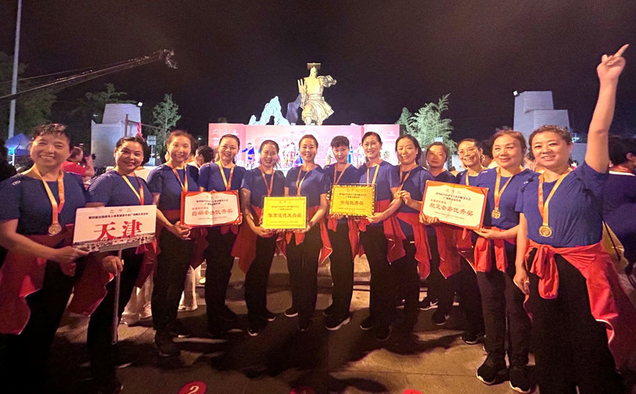 天津代表队由市体育竞赛及社会体育事务中心和市老年人体育协会共同选拔组队,从教练到队员都十分珍惜这次难得的交流机会。活动中,天津队以充满民族风情的题材和活力四射的舞步,展示了津城老年人乐观向上、科学健身的精神风貌。